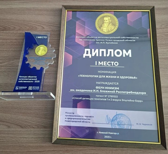 В номинации "Технологии для жизни и здоровья" дипломом I степени отмечена работа ФБУН "Нижегородский научно-исследовательский институт эпидемиологии и микробиологии им. академика И.Н. Блохиной" Роспотребнадзора.