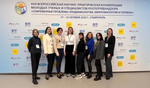С 21 по 23 октября 2025 г. в г. Ставрополь прошла XVII Всероссийская научно-практическая конференция молодых учёных и специалистов Роспотребнадзора «Современные проблемы эпидемиологии, микробиологии и гигиены».